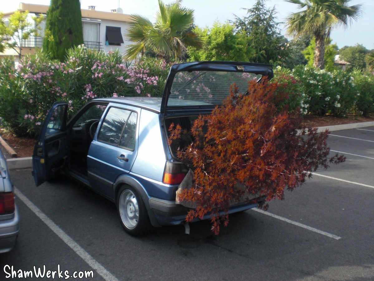 At the foot of the maple trees, and of the basin, black slate flakes bring in some contrast. Thanks, by the way, to "Blue Toad", my '88 mk.II Rabbit, that has faithfully transported absolutely everything possible those past few years... 😉 Here is the result in August, i.e. two month after the original setup : all the plants look fine, the Adiantum Fragrans have exploded,the helexine is creeping away covering everything (I'll have to keep an eye on it), the granite basin got some patina.