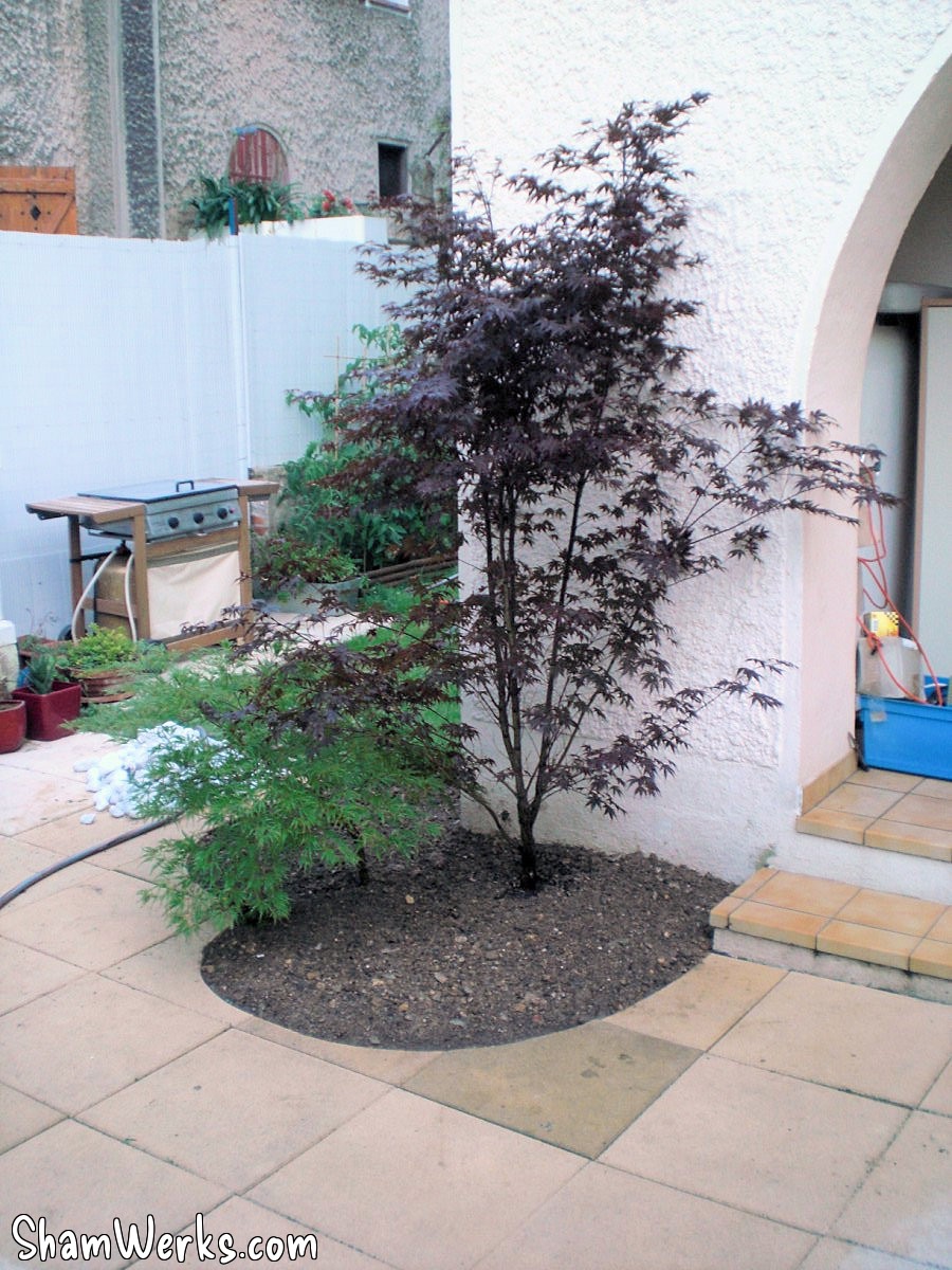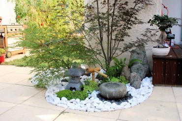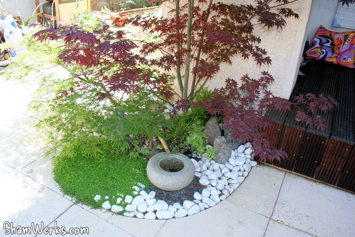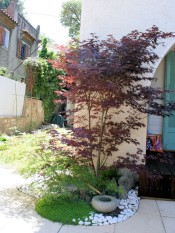 The chaniwa gives me the opportunity to integrate Japanese mapple trees, a tree that I really like a lot, which leaves turn bright red at the autumn.