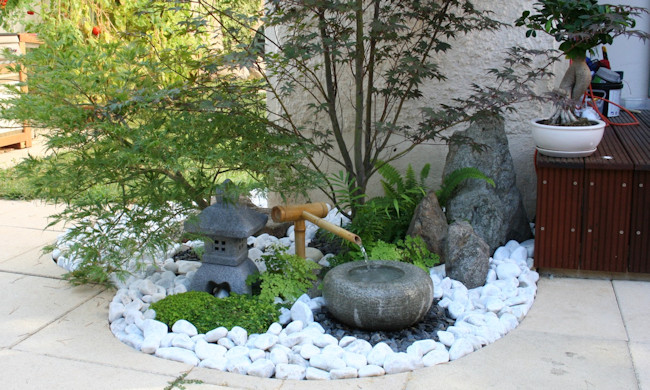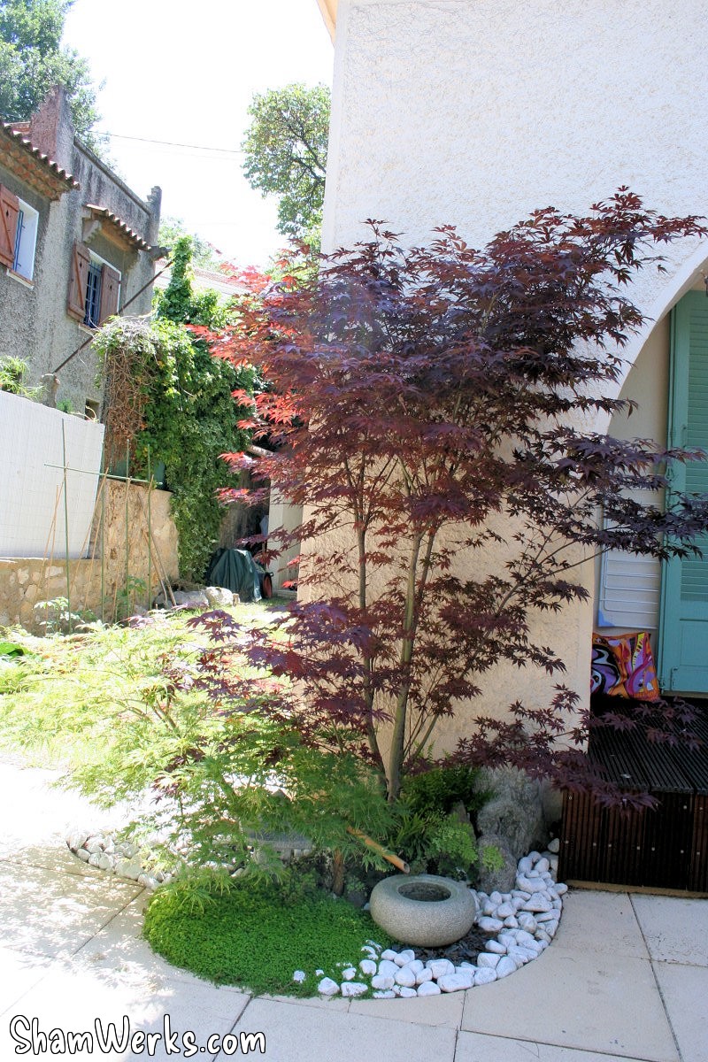 Same thing for the basin : I originally wanted something more natural (evoking Noguchi's fountain at the NYC Metropolitan museum), that one will stay here until I find the perfect one. Even I'm more than satisfied with the result, it's not really a "Japanese" garden, but more a "Japanese-inspired" one. I've tried as hard as possible to follow the rules and codes of a traditional Japanese garden (whereas adapting it with the local plants and available space), but I'm very far from the look and feel of the masters in that art!