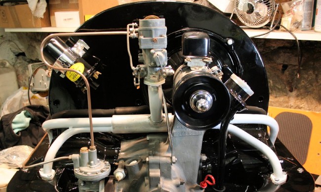 Le remplissage/reniflard d'huile, la coquille sous la pompe et les tôles demi-lune avant et arrière le moteur prennent tous leur couche de peinture... Je n'avais pas prévu de le faire au départ, mais du coup ils faisaient un peu tache à coté des autres pièces bien shiny. 😉