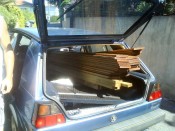 Première étape, aller chercher les matériaux, et c'est pas une mince affaire, ça pèse très vite très lourd, le bois exotique!