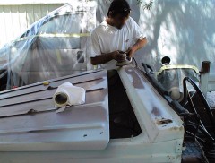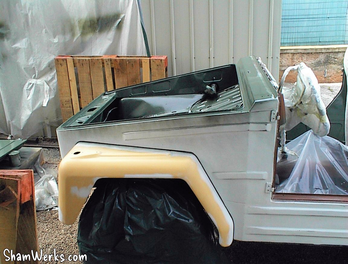 Toujours dans l'esprit de me faire un jouet pour un tarif raisonnable, il était hors de question de passer par un carrossier pour la peinture de Küby. C'est donc du fait maison, full DIY, avec l'aide des copains...