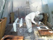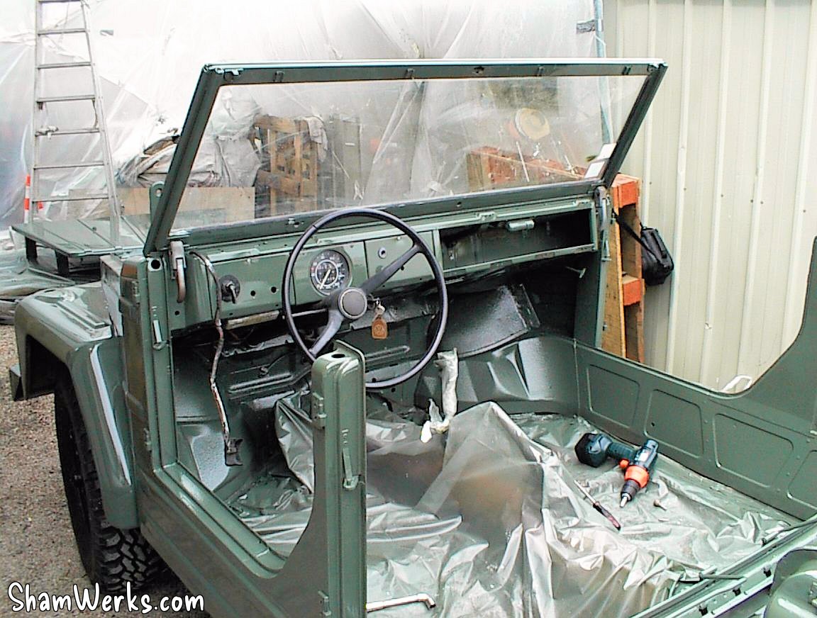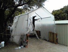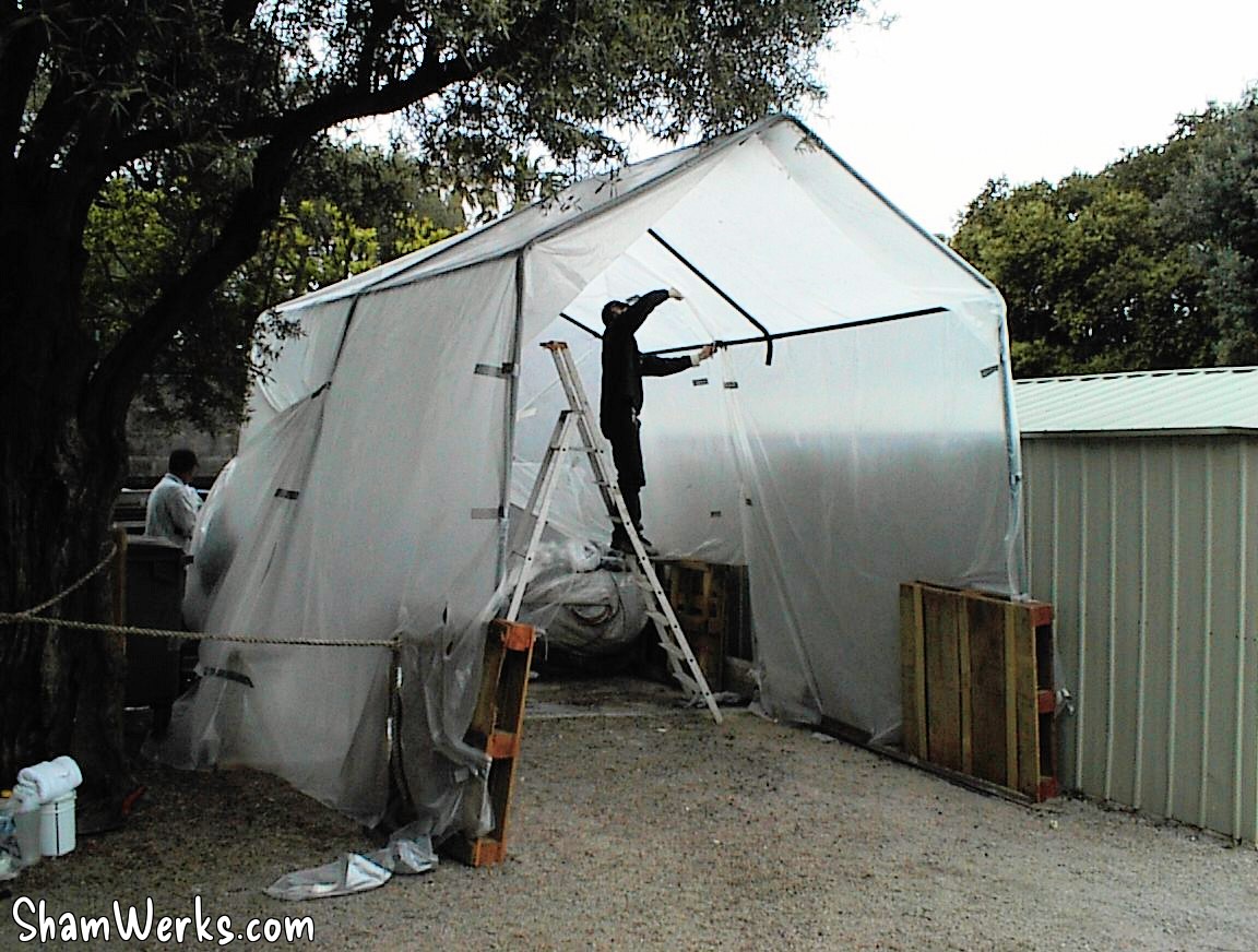 Nous nous fabriquons donc une "cabine" de fortune, juste pour s'abriter un peu de la poussière... Enfin, ça, c'est la partie facile, il faut d'abord préparer la caisse! 😉