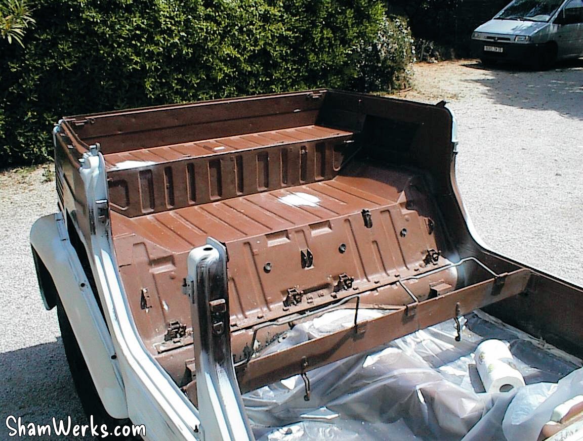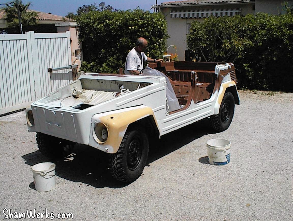 Evidemment, dans ces conditions, la peinture n'est pas celle d'un show car, loin s'en faut. Un ou deux manques, quelques poussières... Mais croyez moi, elle est pas si mal que ça! Et puis dans un budget tout-compris de 600€, c'était difficile de faire beaucoup mieux! Encore que, en y repensant... 😉