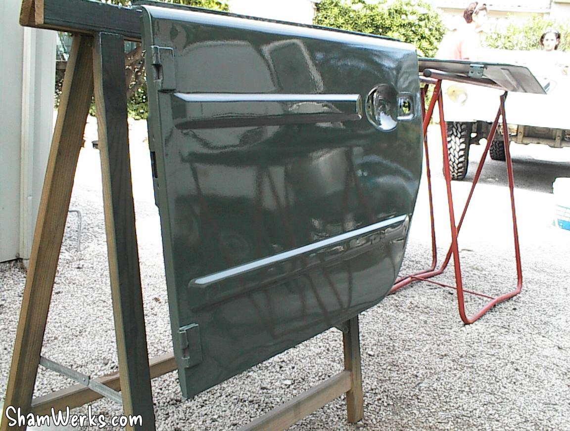 Voila, les ouvrants sont peints... Il ne reste plus que la caisse qui doit recevoir sa couche de sauce verte!