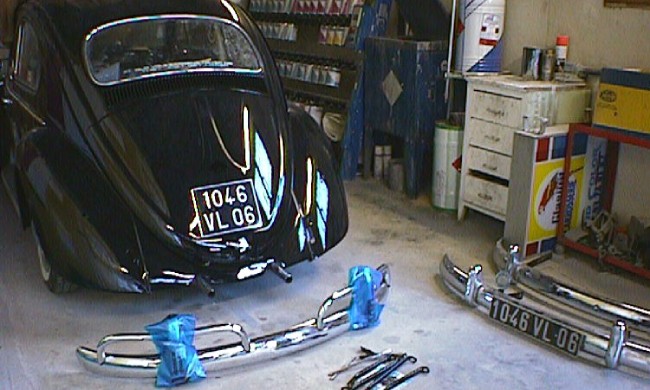 In short, after a few hours spent struggling with the spare parts, Elvira is back on the road with its lights, bumpers, ID Plate (made by Etablissement Maillefaud in Paris, just a free ad for their fantastic work)...