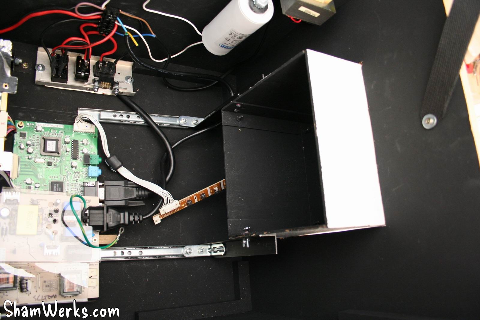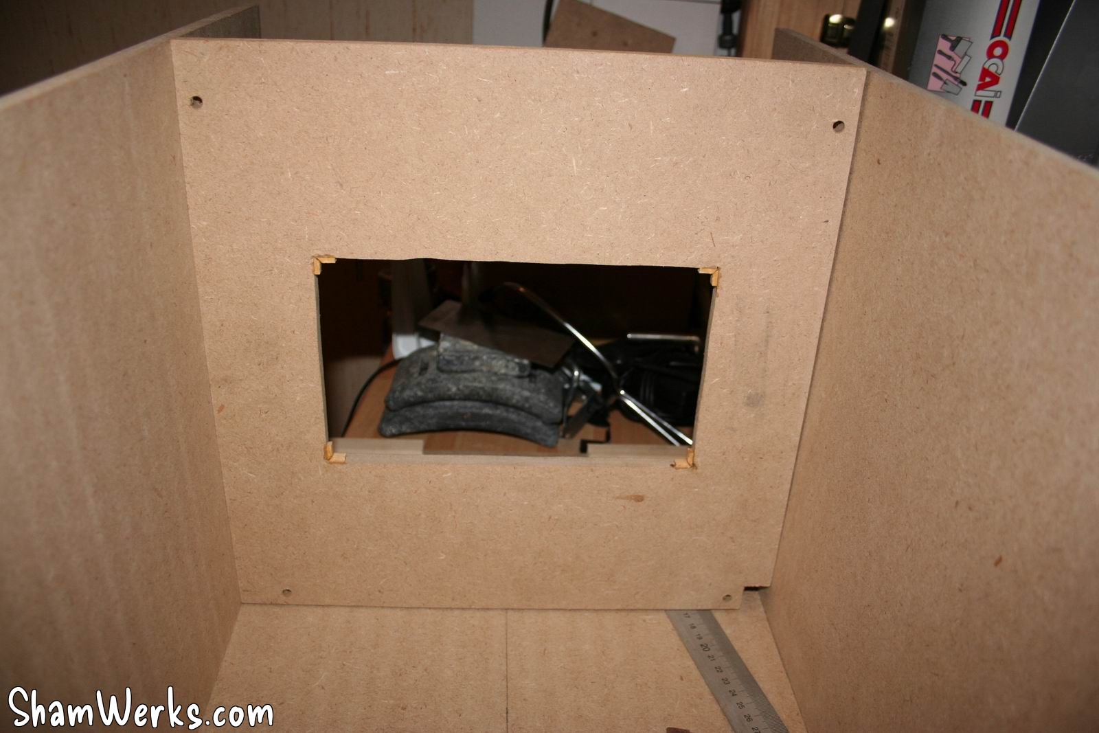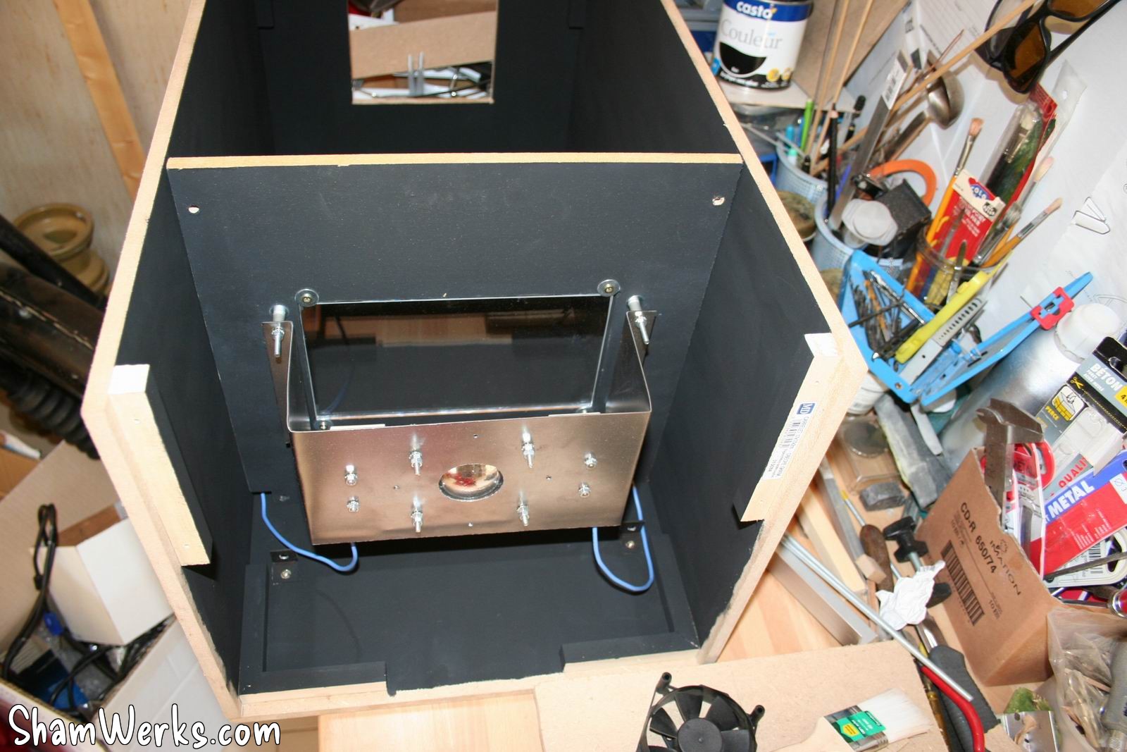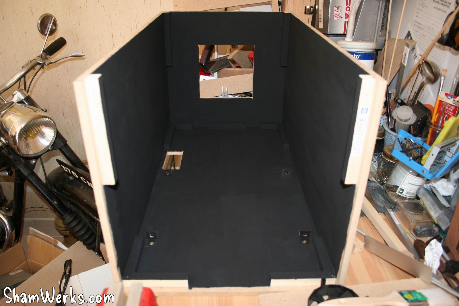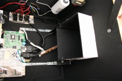 All the interior is painted black to avoid any reflection that would reduce the resulting image quality. The bottom left hole will be used for the VGA connectivity, as well as power inlet, and switches.