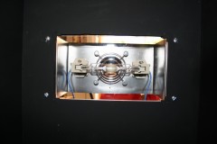 On the left, the lightbox (light source), followed with a borosilicate glass to limit the heat transmission toward the rest of the bow.