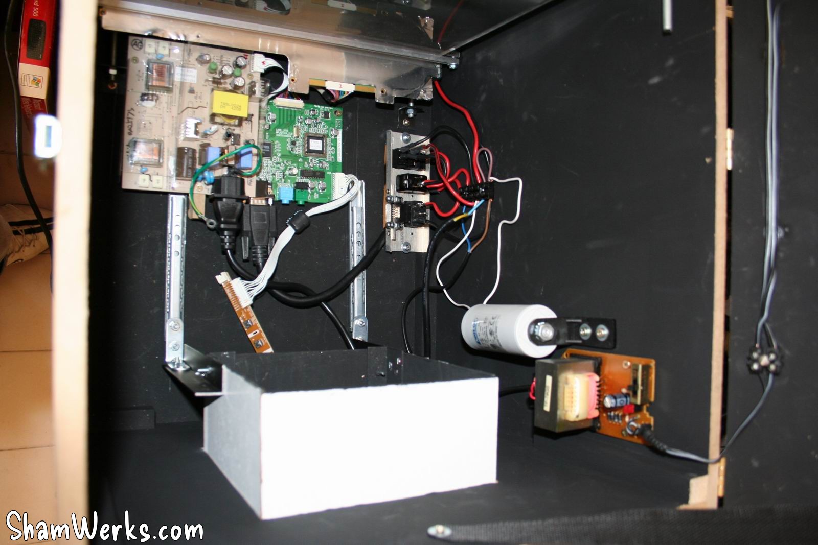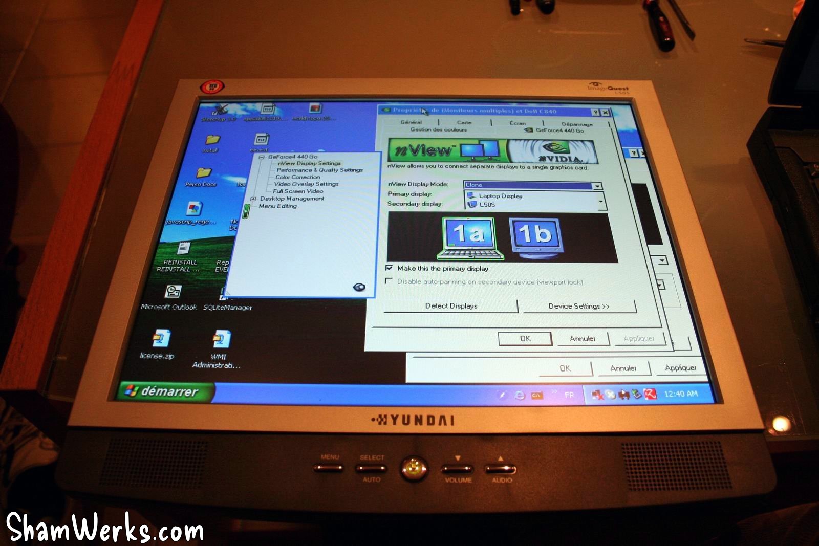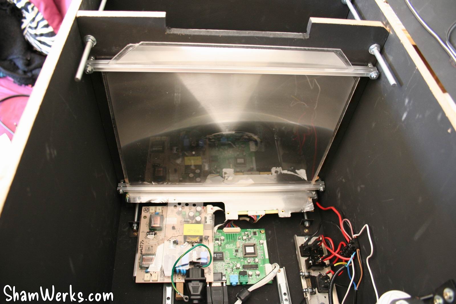 This is the most critical step of the construction : hacking the LCD screen. Do it in a quiet place, marking each plug, do never force on 'em... I used a Hyundaï L50s 17" that I got for a fair price. The benefit of a 17" screen is its 1024x768 resolution : not only I'll be able to watch movies, but also surf the internet, play video games, etc... Balancing drawback : the box will be large, therefore bulky... It's a matter of choices!
