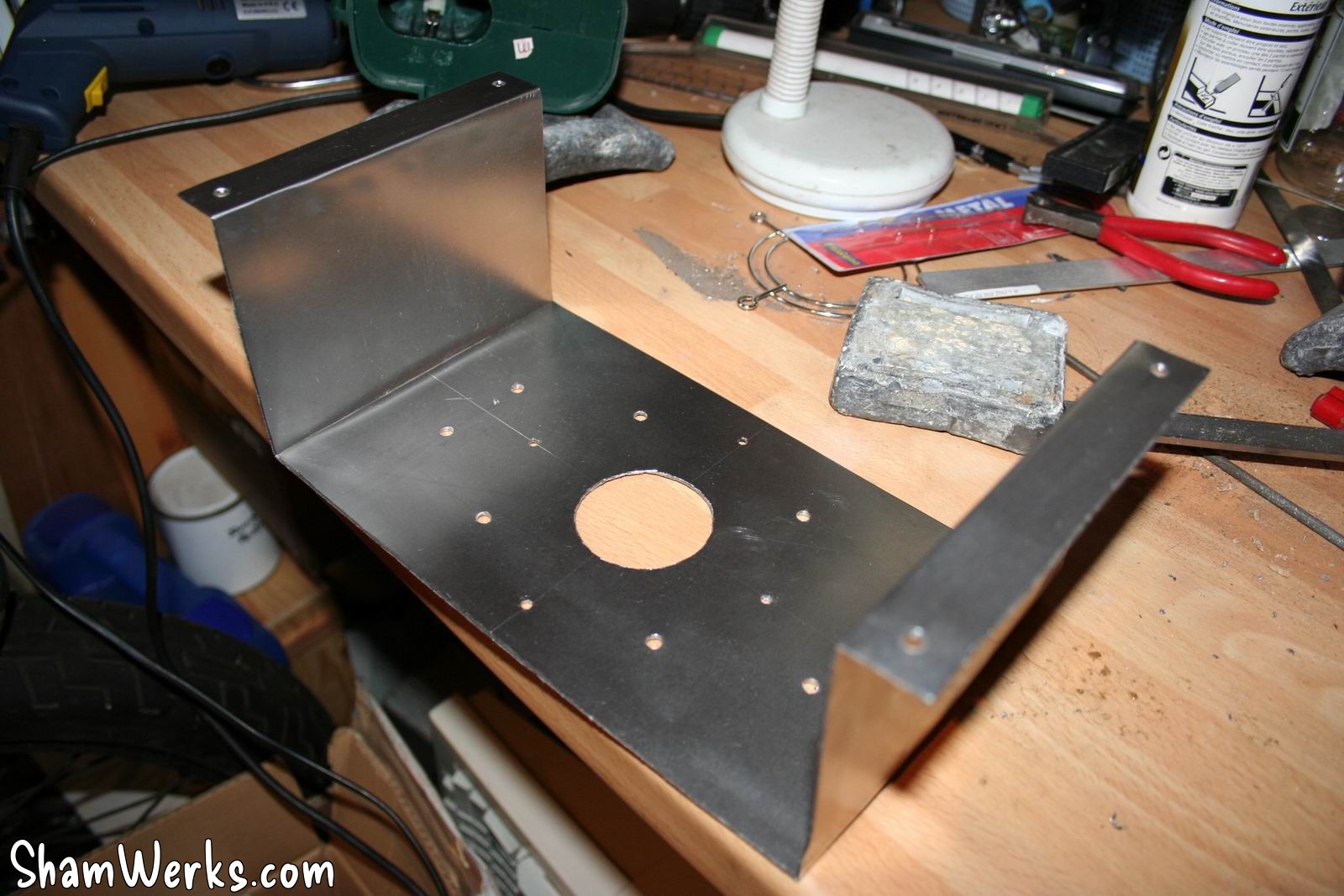 Cutting the support in 1.5mm thick sheet metal, a reflector will come behind the lamp.