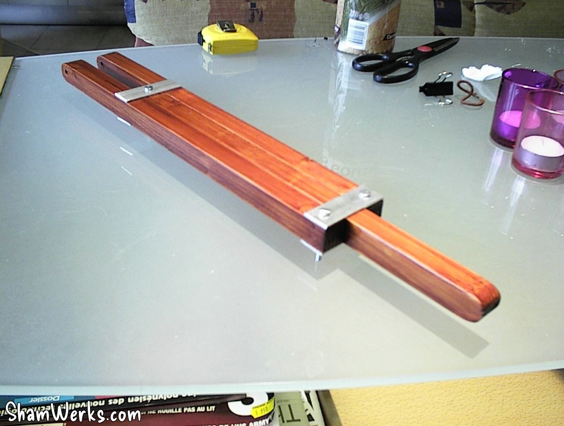 I still have to put some varnish on these babies... I decided to use a mahogany colored varnish which looks nothing but superb. On the other hand, it's bothersome to brush : 3 coats with fine-sanding all the parts (18 parts!) between each layer... It's long and boring, but it's worth it!
