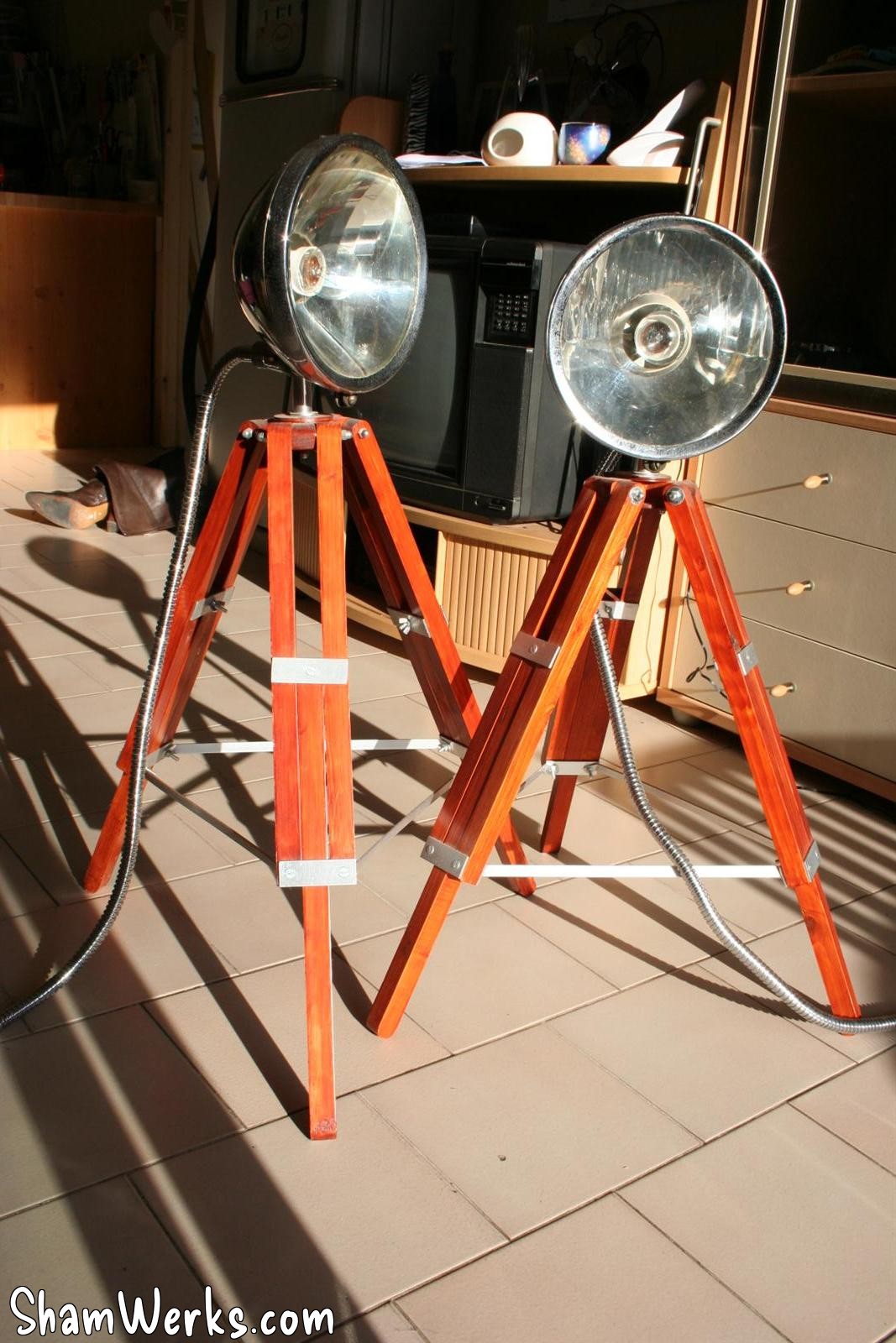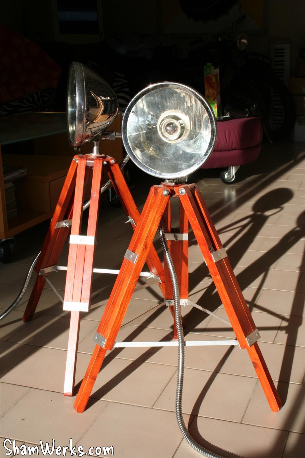 And here is the result! Achieved in a few hours of woodworking, plus some patience, I've got great vintage styled lamps! I Love'em... 😁