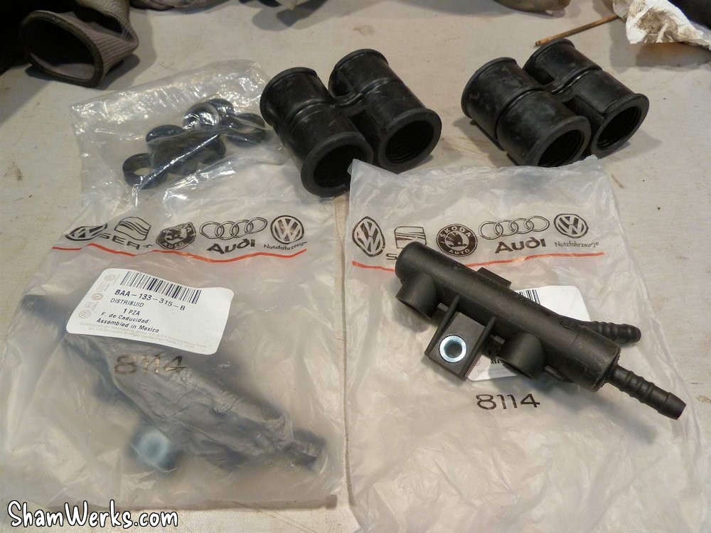 I've ordered a few new parts directly from Mexico (fuel rails, manifold boots and injector gaskets), via a vendor on TheSamba (Antonio Trejo, very good contact!). On the other hand I'm not gonna use the original fuel pump, regulator, injector or ECU from the Mex beetle : technology has progressed a lot since then, let's use something more up-to-date!