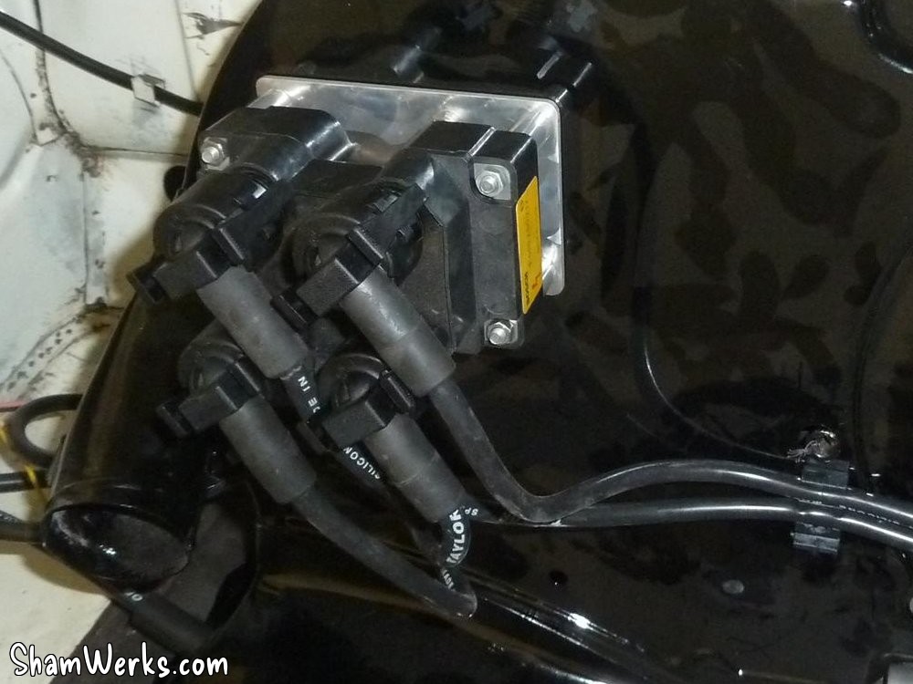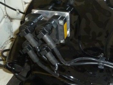The spark plugs will now be NGK models, spark gap set at 0.8mm, but I should be able to push it a bit more : since the Dwell is doubled with the dual coil, I get a big fat spark!