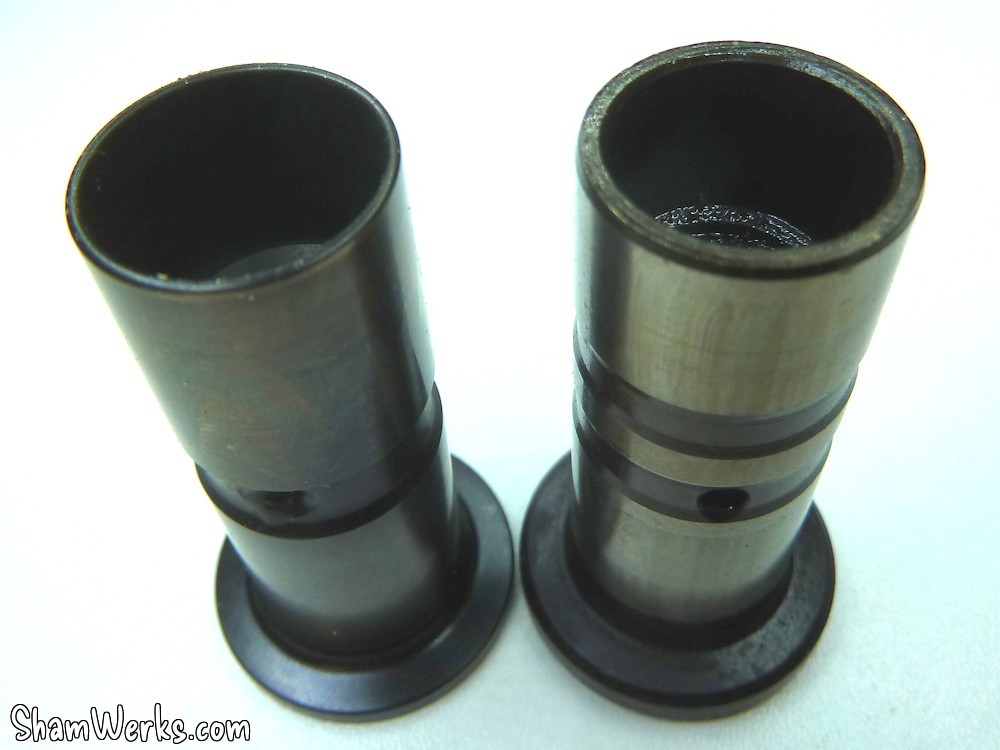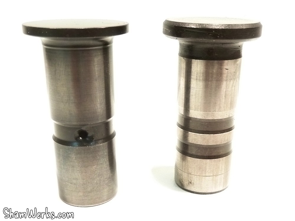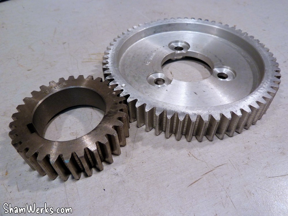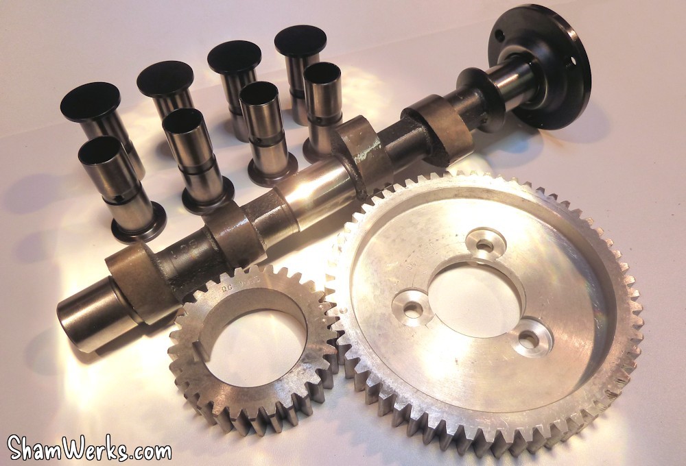 L'arbre à cames est un L&G V280 lobe 108°, pour garder un comportement routier, mais qui puisse envoyer un peu quand même... Un compromis, on verra à l'usage si c'était le bon choix!Il est entraîné par un couple de pignons à taille droite, pour limiter les efforts axiaux, et grappiller un peu de puissance... Ils sont en acier/alu (pour limiter le bruit) : acier sur le vilo, aluminium sur l'arbre à cames. Les poussoirs sont des Tool Steel, principalement pour pas avoir à me faire de soucis avec le rodage d'arbre à cames au premier démarrage (les aléas de l'injection au début hein...).