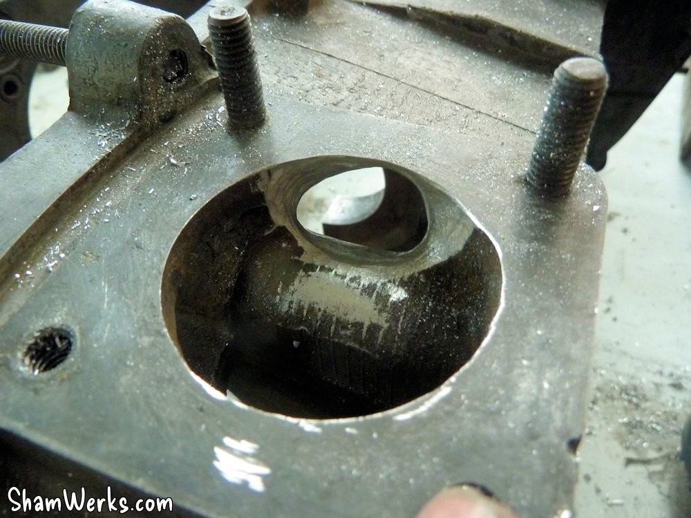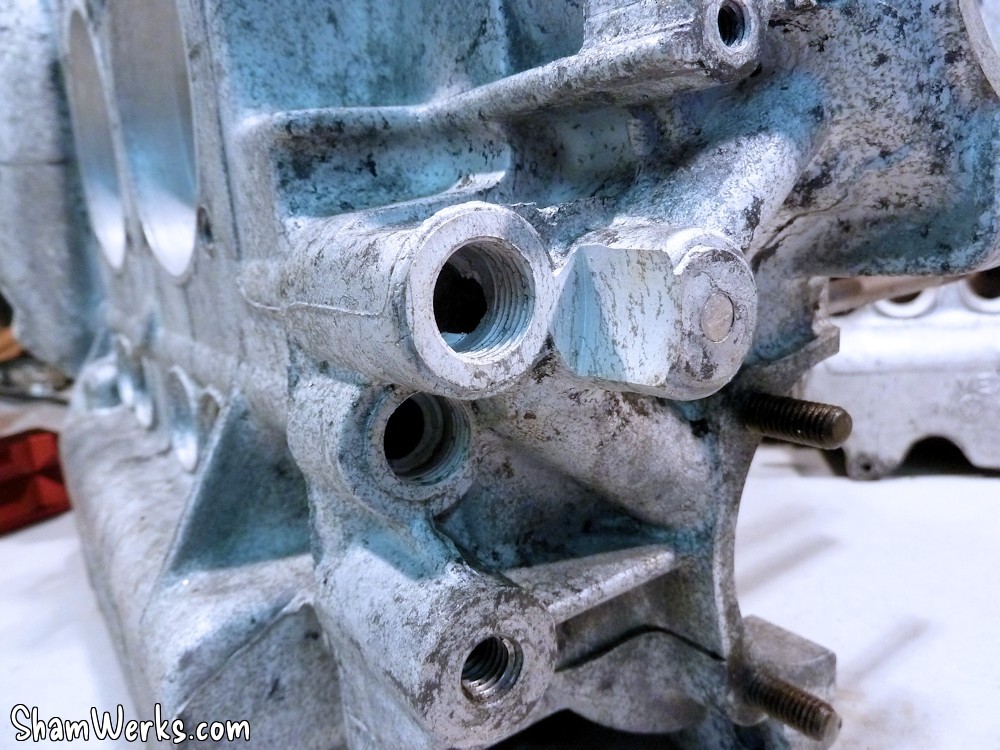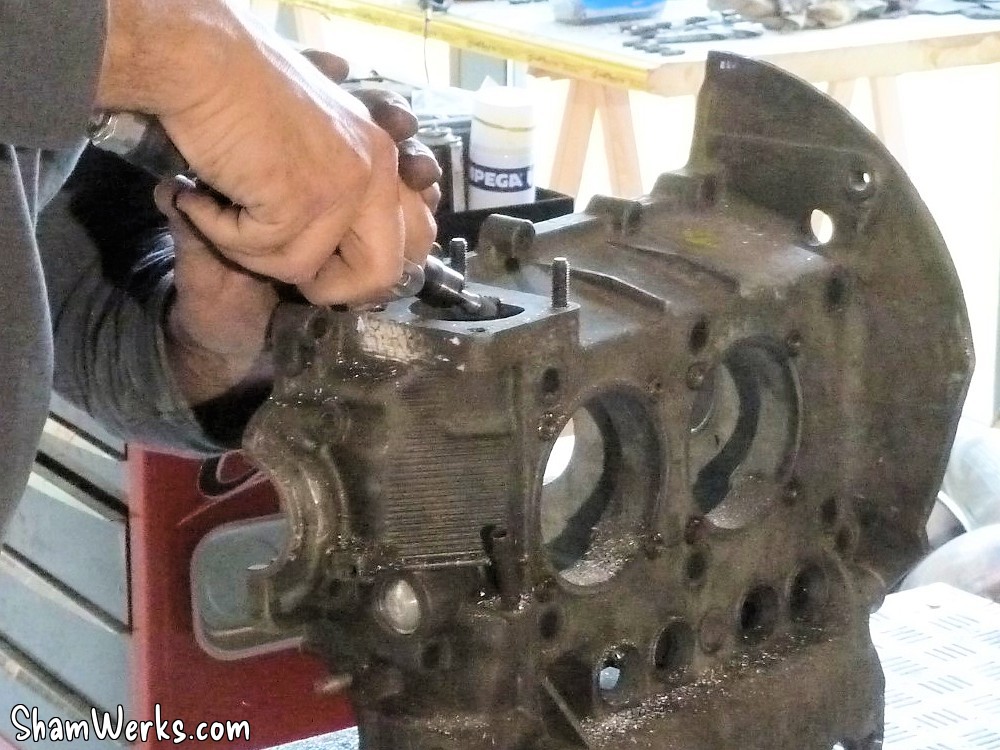 Attention : bien contrôler qu'il y a suffisamment de matière sur le bloc avant de taper dedans, toutes les fonderies ne sont pas identiques, sur certaines c'est un coup à déboucher à l'extérieur... et à foutre un carter à la benne.