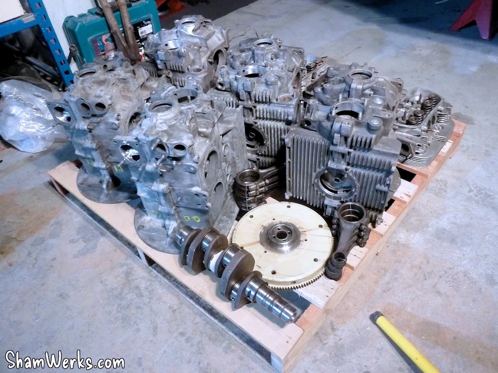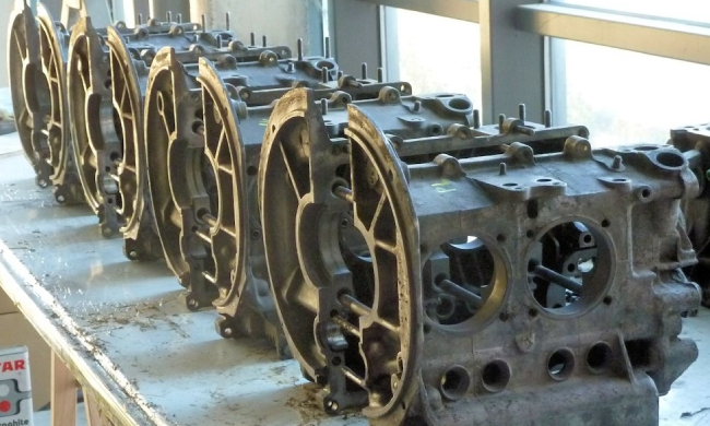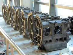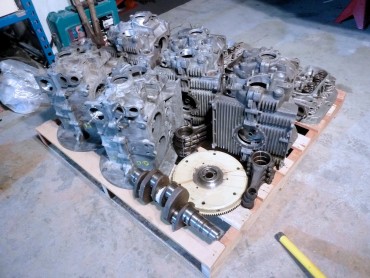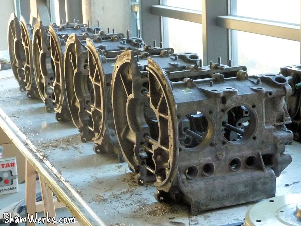 Le carter part ensuite en usinage, et pas tout seul : comme on est plusieurs a bosser sur nos moulins, on mutualise les frais de port, et c'est une palette entière de pièces qui partent à l'usinage! Au programme pour mon carter, usinage des puits de cylindres pour passage en 90.5, full flow (pour ajouter un filtre à huile digne de ce nom), shuffle pin sur le palier central (pour rigidifier le bloc), pose des inserts de goujons 8mm, et enfin nettoyage chimique du bloc, histoire de partir sur du propre.