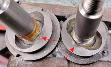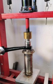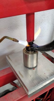 Je sors donc la fusée pour la passer à la presse hydraulique (#cestjamaissimple) : chalumeau oxy + WD40 + presse hydraulique 6 tonnes + masse et marteau en sandwich, et elle finit par sortir (avec un "bang" qui m'a fait siffler l'oreille pendant 10 minutes!).