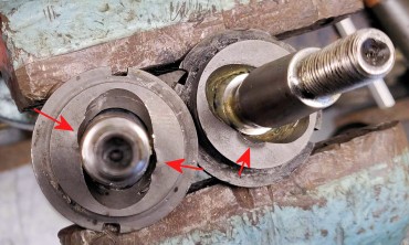 Sauf que la rotule est celle d'origine, complètement soudée par la rouille après plus de cinquante ans, et c'est l'extracteur qui casse (enfin son axe, qu'on trouve en pièce de rechange d'ailleurs)...