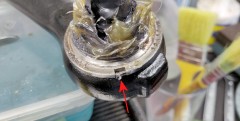 Impossible de régler le jeu correctement, il "grippait" sur certains angles puis avait du jeu d'un coup... Bref, tant que j'y suis je le remplace par un neuf, avec son flector qui était d'origine et bien craquelé. #çadérapeencore