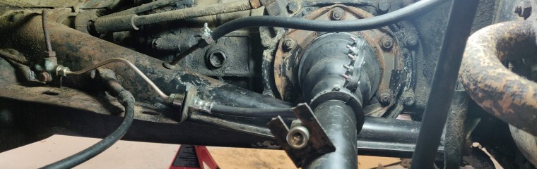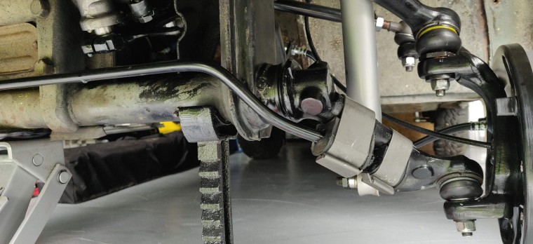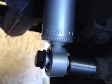 J'en profite aussi pour installer des butées de suspension arrières, qui brillent par leur absence (le support gauche est bouffé par la rouille, je dois en souder un neuf à la place)
