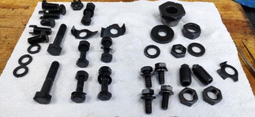 Toujours pour faire propre, la visserie est passée au Brunifast : c'est un brunissage à froid, un traitement de surface qui noircit l'acier (comme les canons de fusil) et offre une petite protection antirouille.