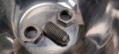 Passer en goujons épaulés pressés : il faudrait usiner un peu coté intérieur parce qu'il n'y a pas la place pour la tête du goujon (ça frotte la coupelle de ressort de la garniture), mais il n'y a pas assez de viande dans le tambour pour le faire : 8mm d'épaisseur seulement.