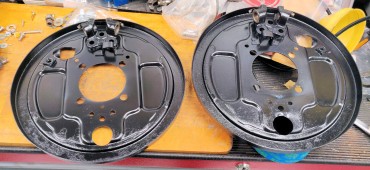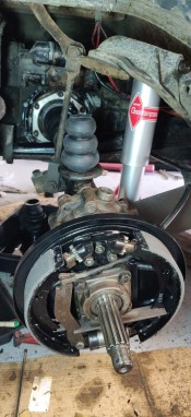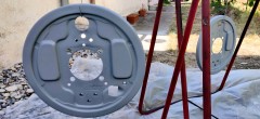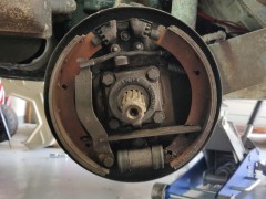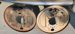 Je change donc toutes les pièces cylindre/tambour/garnitures/ressorts/flexibles/rigides (je ne garde qu'un des deux tambours, qui avait été changé récemment par l'ancien proprio et n'avait qu'un peu de rouille de surface sur l'extérieur), puis sablage/peinture des plateaux et des tambours (j'utilise un apprêt MOTIP et deux couches de noir de la même marque.), nettoyage des cylindres de roue au liquide de frein, et montage avec la touche de graisse cuivre qui va bien aux points de frottement... Je ne détaille pas tout, allez relire mes billets sur les freins de la cox et ceux du Karmann, c'est la même procédure.