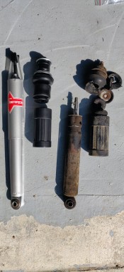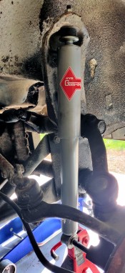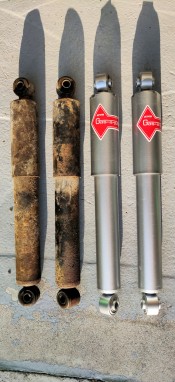 Je pose quatre amortisseurs KYB Gris Gaz-a-Just - il semble que Küby avait encore ses amortisseurs d'origine de 1970!