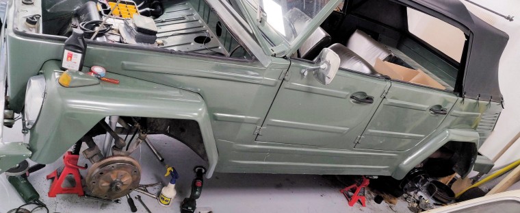 Par contre mes rotules de suspension étaient très serrées après montage, rendant la direction très dure à tourner... C'est supposé s'améliorer au rodage en roulant, mais franchement je ne me voyais pas conduire dans ces conditions. Du coup j'ai suivi une méthode trouvée sur TheSamba, qui consiste à forcer un pré-rodage des rotules à la clé à chocs (voir en vidéo ici ou là).
