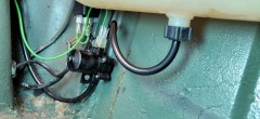 Exit le système d'origine actionné par la pression d'air de la roue de secours, j'adapte un switch derrière le commodo d'origine, qui actionne une pompe à eau électrique installée sous le réservoir de liquide lave glace.