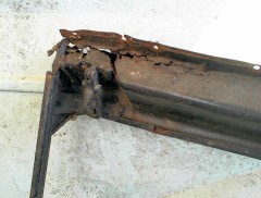 Obviously, there's no top... The top chassis is there, but it's a bit bent... Plus the front rail is over-rusted! That's an usual problem on Things, humidity accumulates inside this cavity, and here is the result 30 years later :