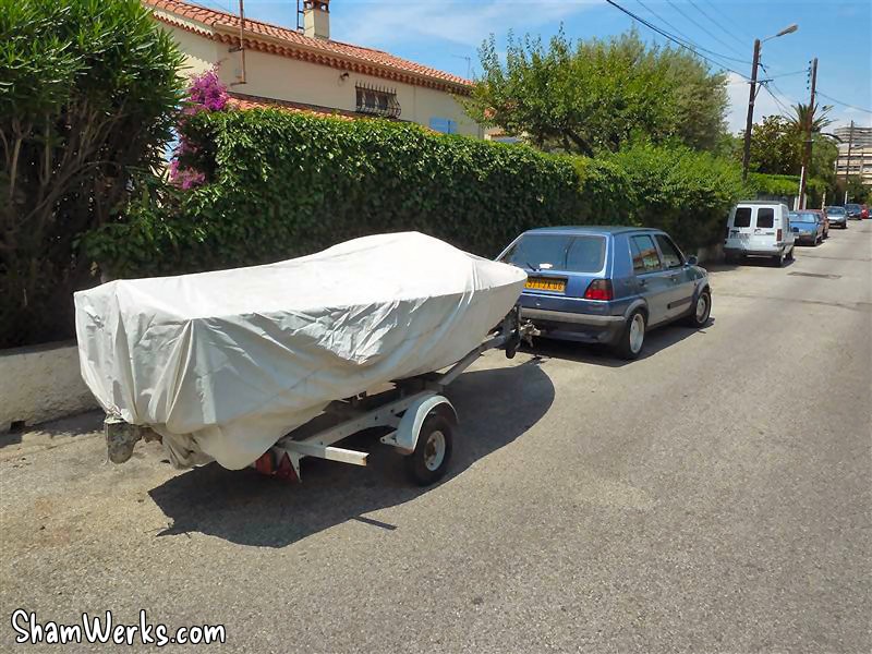 To begin with, in early June I moved her to my workshop (which I recently refurbished) : I had to install a tow ball on Blue Toad, my VW Rabbit, with which I really have moved everything. 😉