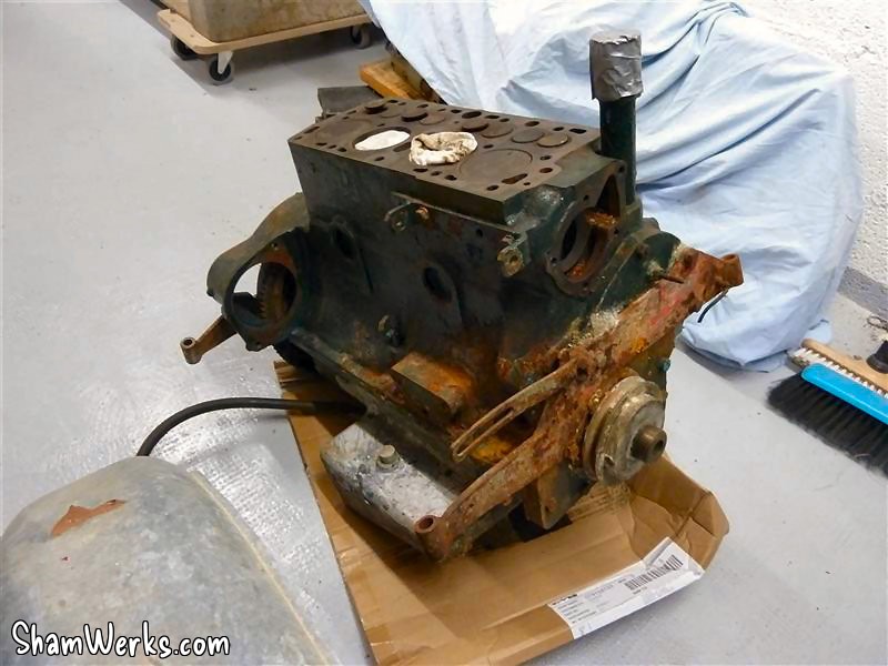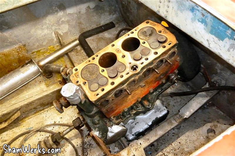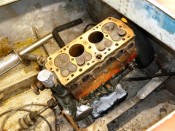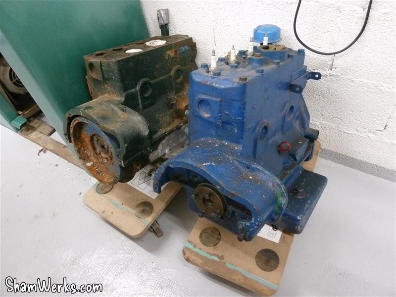 I also got my hands on the spare engine Fred kept for me (thanks for your patience buddy!), I'm pretty sure I can make one good engine out of these two. Getting the engine out of the hull was easier than I thought. The small 100E block isn't that heavy... With the help of a friend (thanks David), it came out pretty easily.
