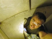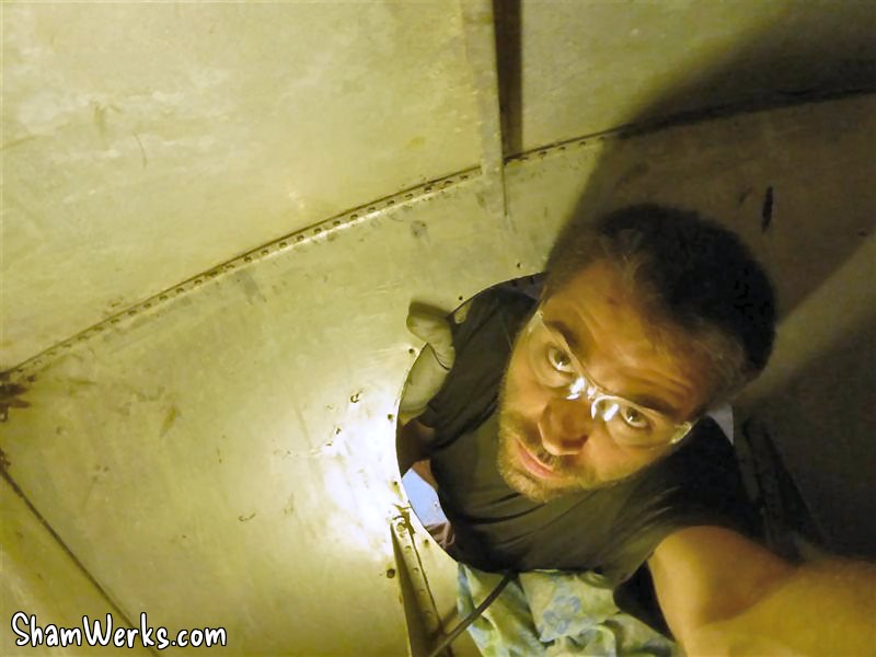Each one of them is like "welded", and it's a renewed challenge every time to take them out. Any method is good : WD40, impact screwdriver, heat gun, hammer, pneumatic grinder... But at the end of the day, the one that gave the best results is using vise-grips, very tightly tighten on the inside part of the screw (once the nut is removed). Then, with a small back-and-fort movement, the screw gives in... But it take a solid 10mn per screw, and I count 60 of'em just from the aluminium rail around the hull! And you'd better not be claustrophobic : to get access to the front compartment, you need to crawl under the dashboard (being 6ft tall doesn't help, believe me), then slide head first into a 35cm (13.7") hole all the way to the waist ; my shoulders don't even fit in that hole, I need to pass one after the other, with razor-sharp edges all around, no room for my arms, no breathable air... Even though I'm not claustrophobic, I must admit that one night, alone at 1AM, stuck into that compartment, I wasn't feeling that comfortable. 😉