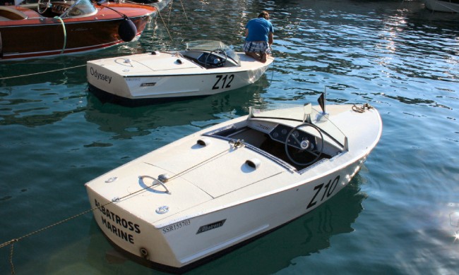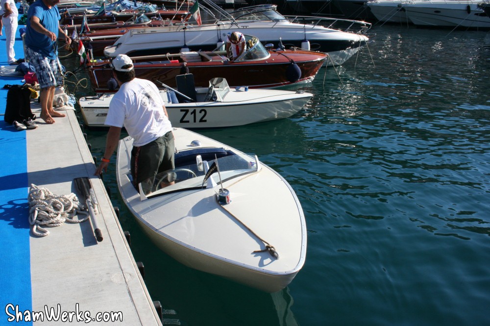 It's a great opportunity to see a fantastic panel of shiny Rivas and Chris Crafts with their mirror-like varnish, but I was out there to meet John Fildes (from AlbatrossMarine.co.uk) who drove all the way down from UK towing 2 Albatross!