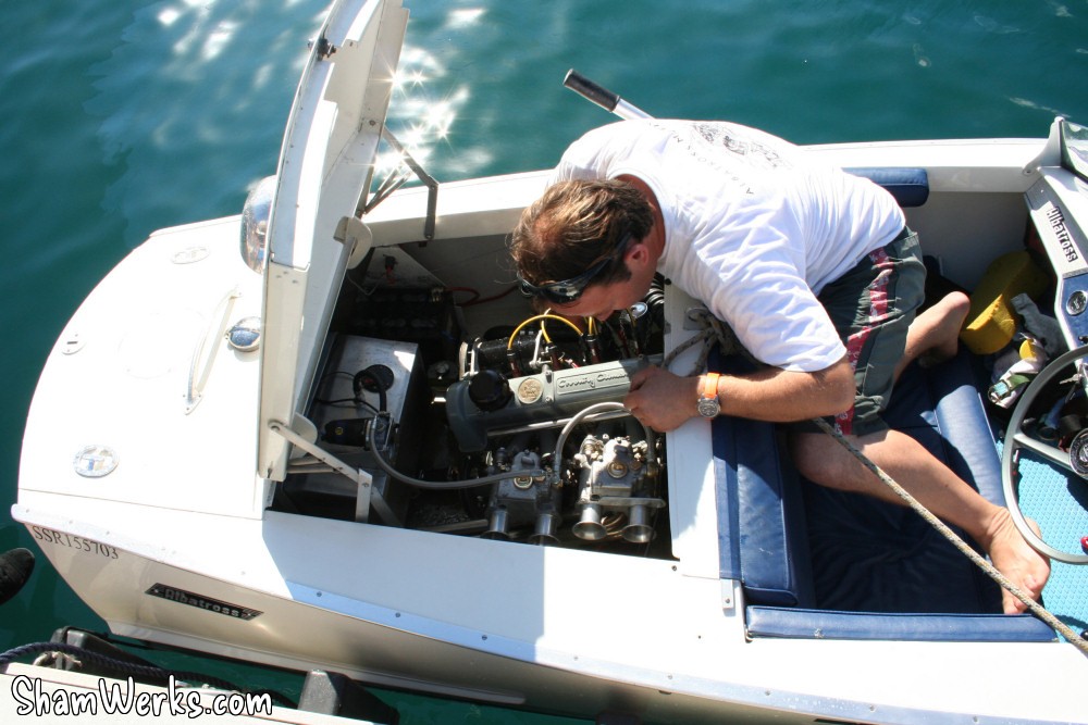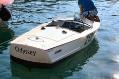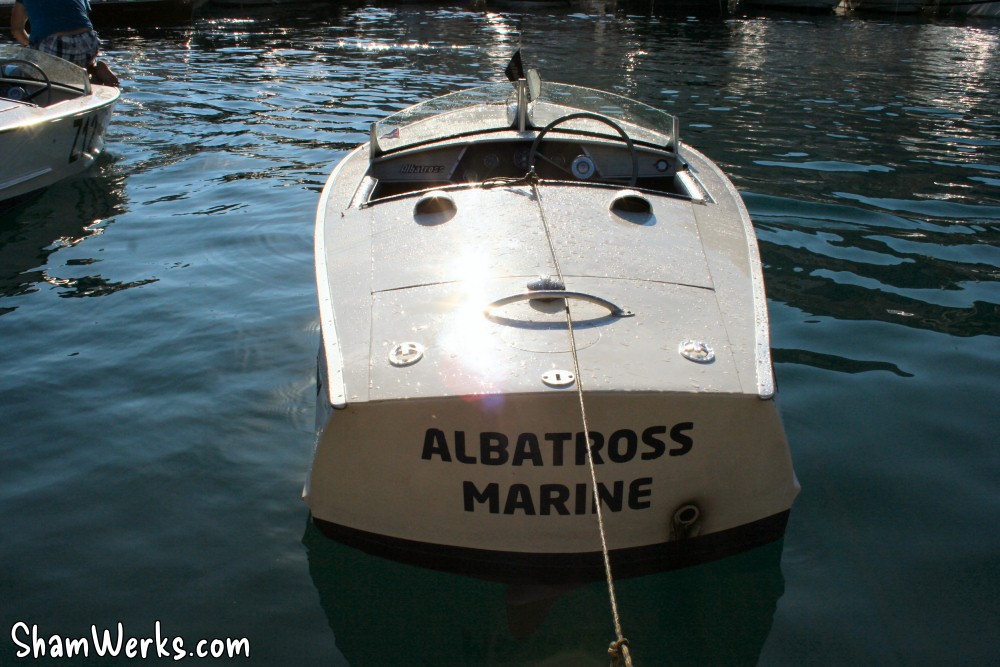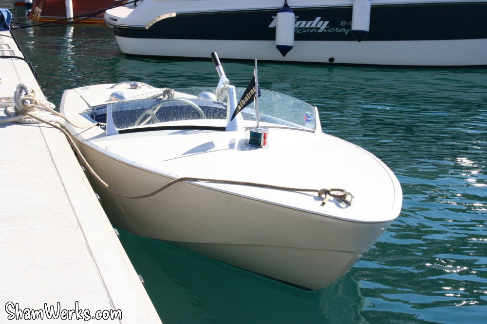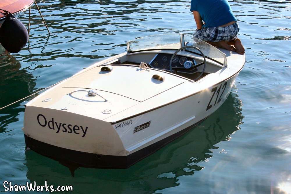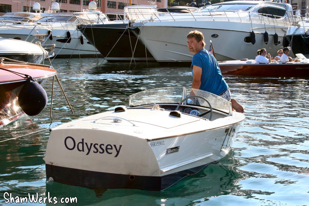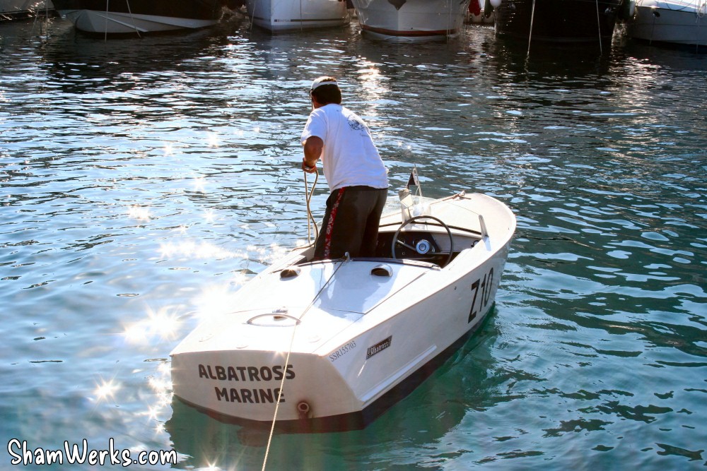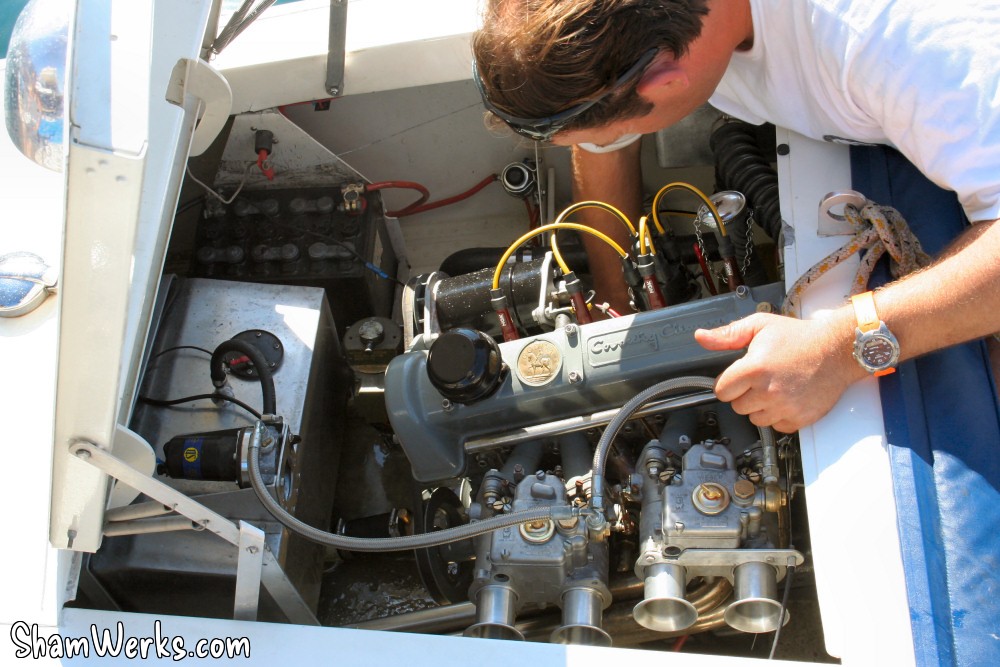 So I was in for a treat, a 45mn spin on-board one of these Albies, propelled at almost 70km/h (peak speed) by the rare Coventry Climax engine fed by two dual-barrel Weber carburetors ; the Albatross might very well have been the smallest boats of the whole event, but they sure were the fastest as well! My back vertebrae will remember this ride for quite a while!