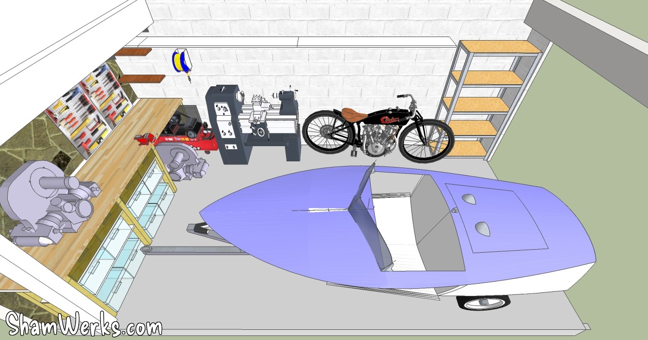 - 4 néons 1m20 au plafond pour un bon éclairage, plus 3 halogènes 150w au dessus de l'établi au fond.