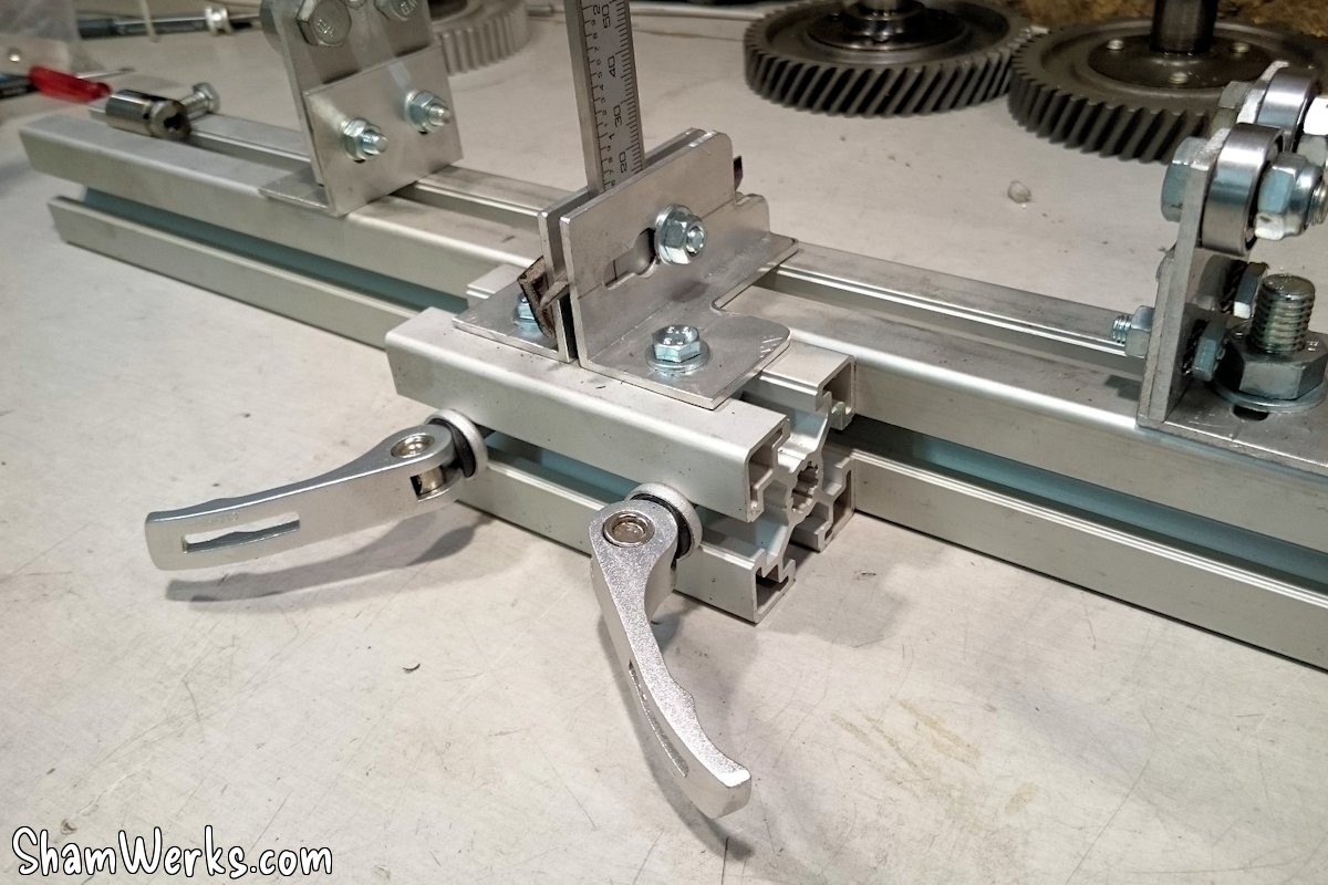 The grooves let me easily move the mounts/brackets, and the caliper stand, making the whole bench adaptable to camshafts other that Aircooled VW ones.