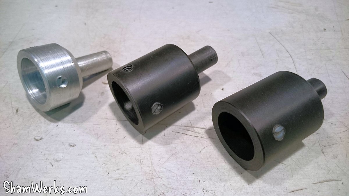 And since I got myself some POM (PolyOxyMethylene), stock, I make 2 adapters : one for Type 1 camshafts (ID 25 mm), and another for 36hp ones (ID 24 mm). Both have an identical 34mm OD, so I can swap'em without having to adjust the height of the bearing support below.