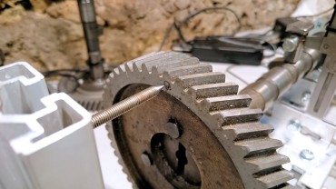There, the whole system runs now, even though some points will need attention. On these pictures you can see the caliper movement return movement powered by rubber bands : it actually did not work that great, the caliper tends to jam, which creates mistakes in the measures.