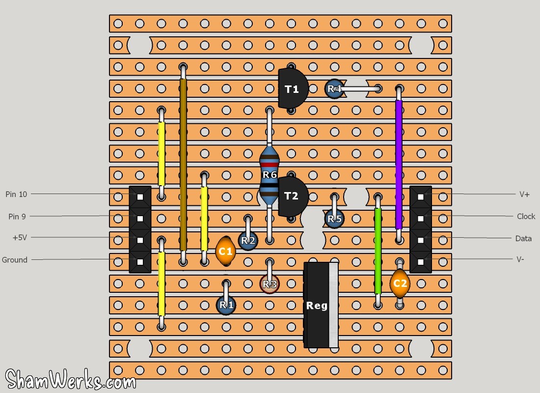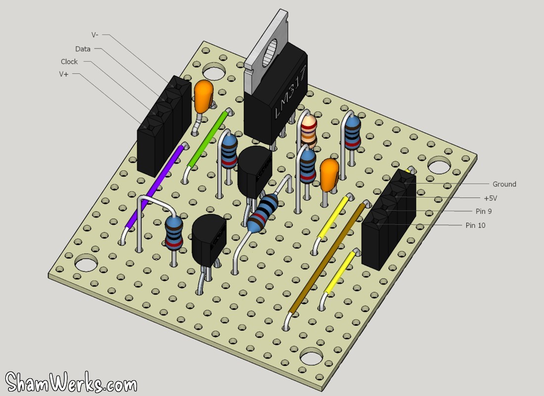 You'll find down here the schematics of my circuit. Mind you, I have no such pretension to say that this is the right/best way to do it, electronics is by no mean into my comfort zone... But it does work great, feel free to modify/enhance it as you like! The Sketchup model is available here (4Mo).