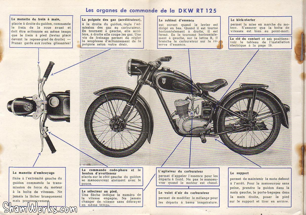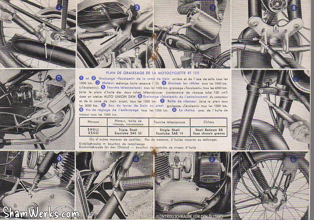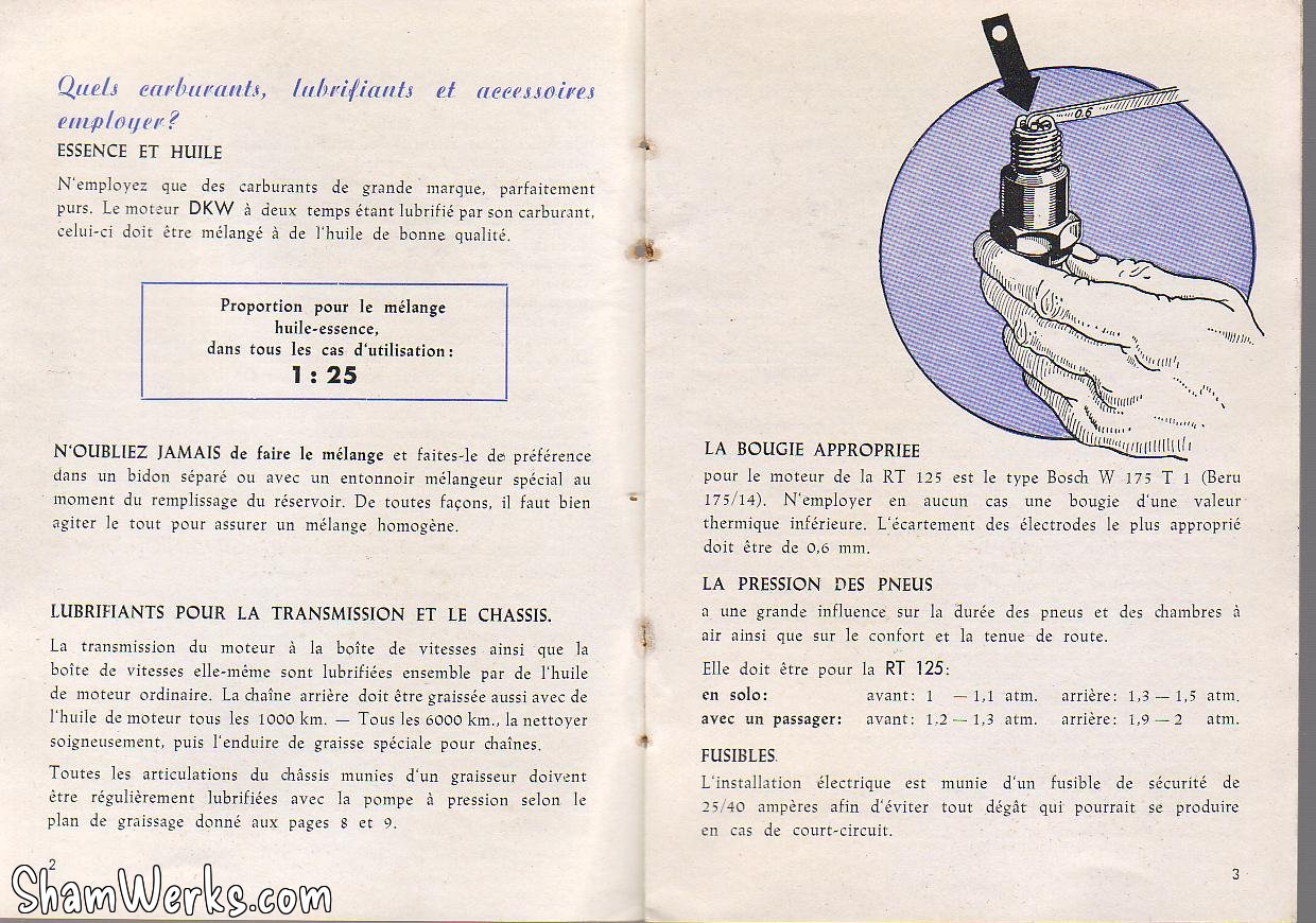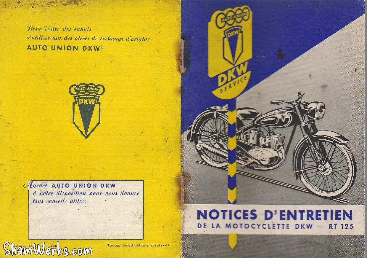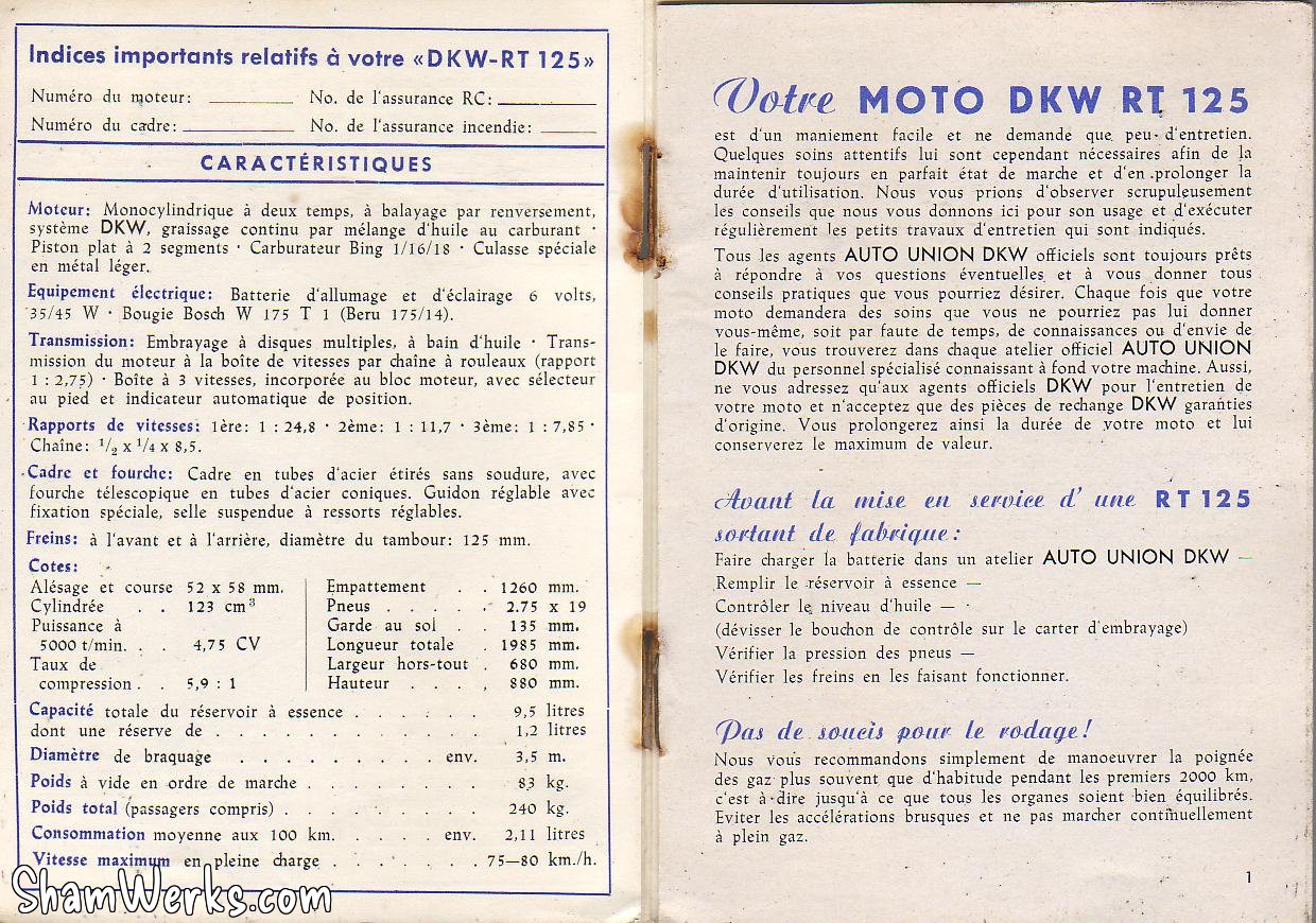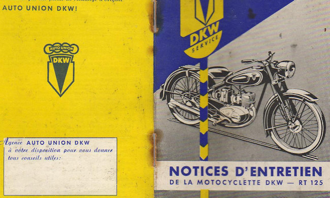 Technical data about the DKW/IFA RT125 being pretty hard to find (part from German stuff), I put online today a DKW RT 125 Care manual (date unknown, between 54 and 57)... Plus, it's in french! (Sorry, you English-speaking reader! 😉)