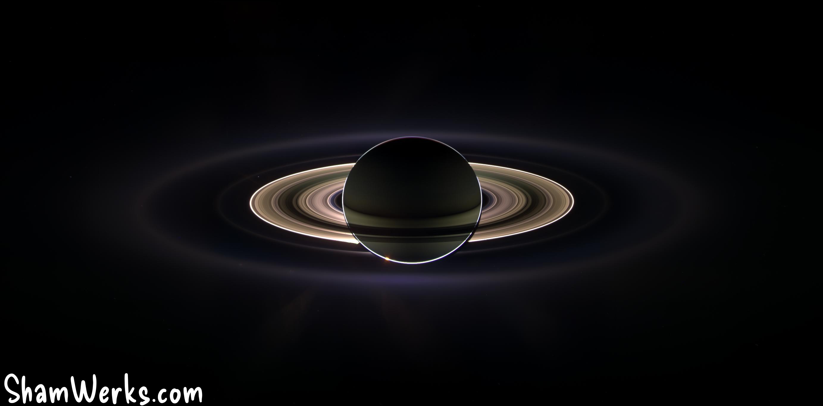 The picture above is a photograph taken on September 15th by the Cassini-uygens probe... Actually, this is a mosaic of 165 pictures, taken over a 3 hours period, while the probe was in Saturn's shadow. So we can see, for the very first time, the ringed giant in back-light! (click the picture to see it full res... And to learn more, follow this link.)