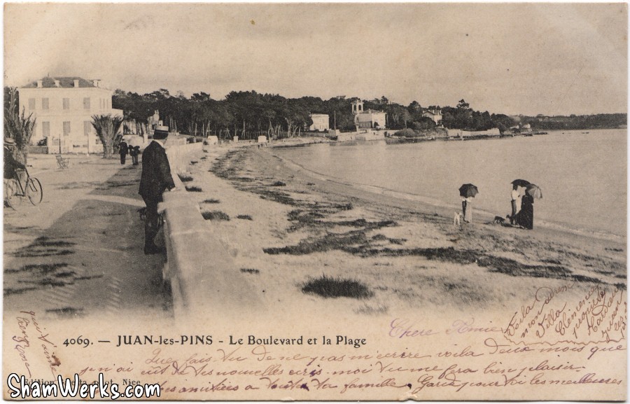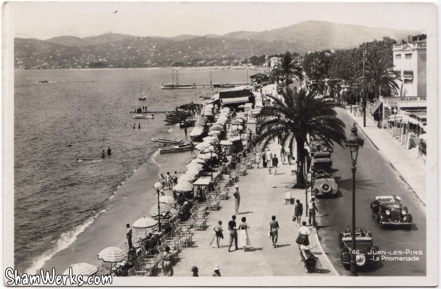 Petit voyage dans le temps aujourd'hui, avec quelques cartes postales du même coin de Juan-les-Pins : ce qui aujourd'hui s'appelle le Boulevard Baudouin, ou "Promenade du Soleil" (enfin, son début).