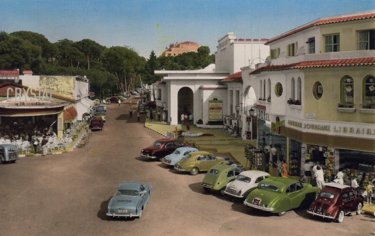 There's no indicated date, but referring to the ID plates (most recent is DL 06) I assume it's been taken around 1956. The poster on the Casino announces the election of the Reine des Fleurs de la Riviera (the Riviera's Queen of Flowers) on Saturday June 23rd. In 56 only, June 23rd was a Saturday, which confirms the year. Due to the light and the way people are dressed, we can guess the picture was taken in May-June 1956...