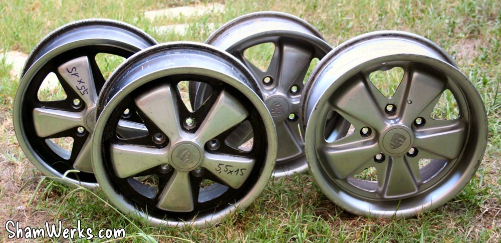 Des véritables Porsche Deep Fuchs d'avant février '71, pas des copies, en 5.5" devant et 6" derrière... Überlike! :