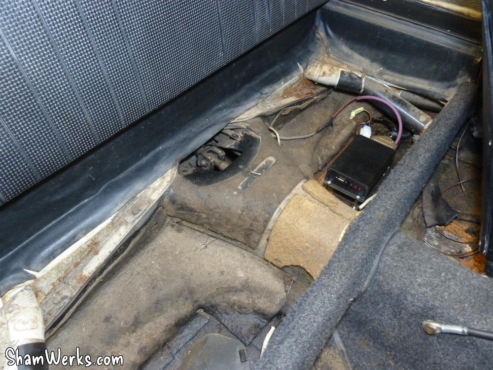 The whole thing is then installed in the car, below the back seat, on the driver's side, on a set of silent-blocs. OK, electronics, check... Now, let's connect it to the engine, right? 😉 Published on 29/09/2013 / 2 commentaires