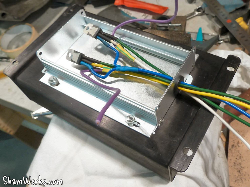 I've made a couple of modification to the standard design (everything is very well documented for that purpose) of my Megasquirt : I've flashed the firmware to MSExtra (more options), I've added a transistor to control the idle valve (additional air, the original 1600i on the Mexico beetles had one), and I've wired two outputs for the wasted spark ignition coil. I've installed the two transistors controlling the ignition coil in a dedicated box (Spark Box), bolted below the MS. It makes their cooling a bit better, limits the interferences, and prevents overpopulation inside the MS box (it's already pretty crowded in there!). Well, that's just my opinion...