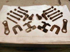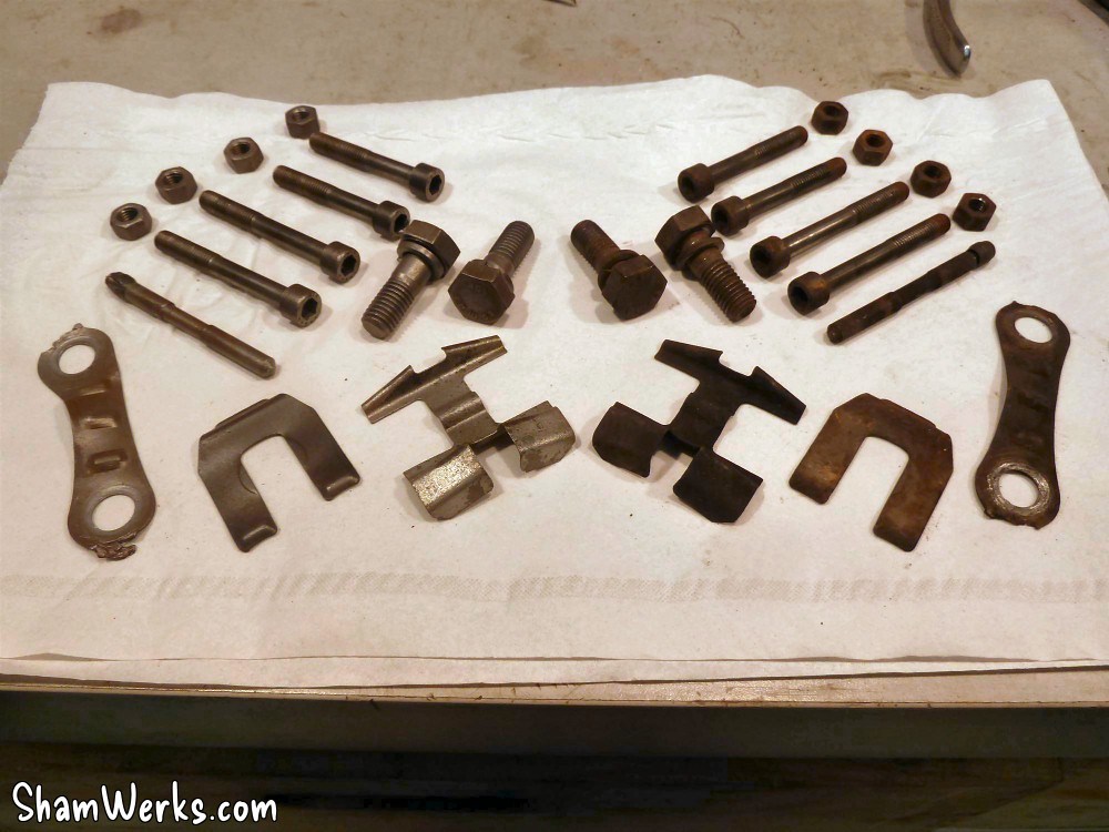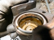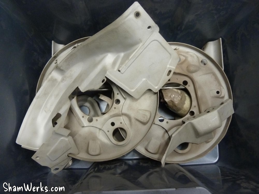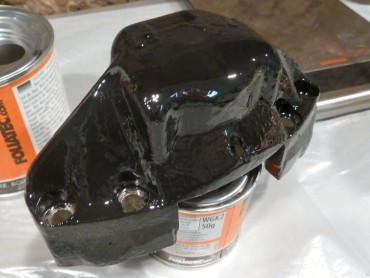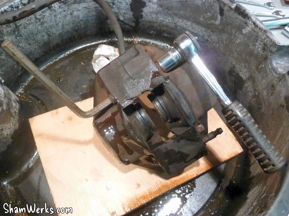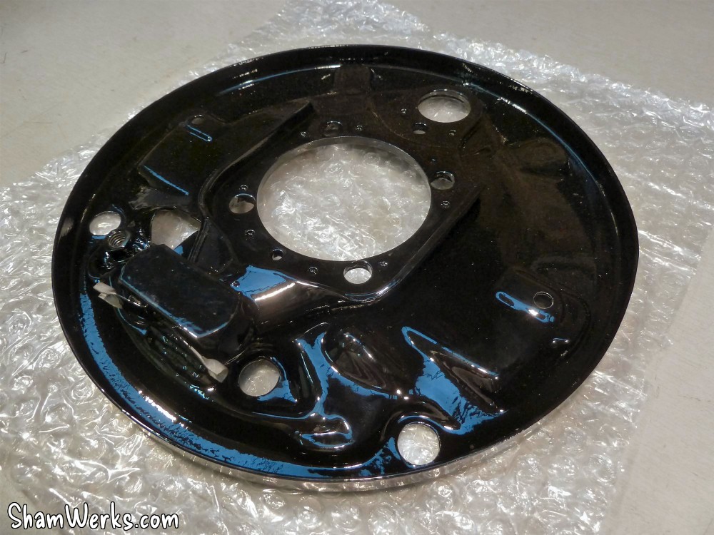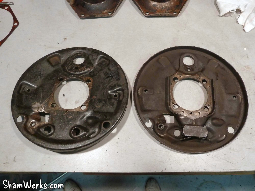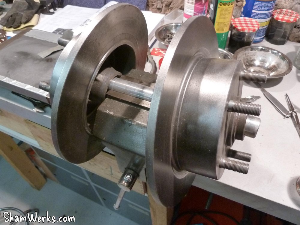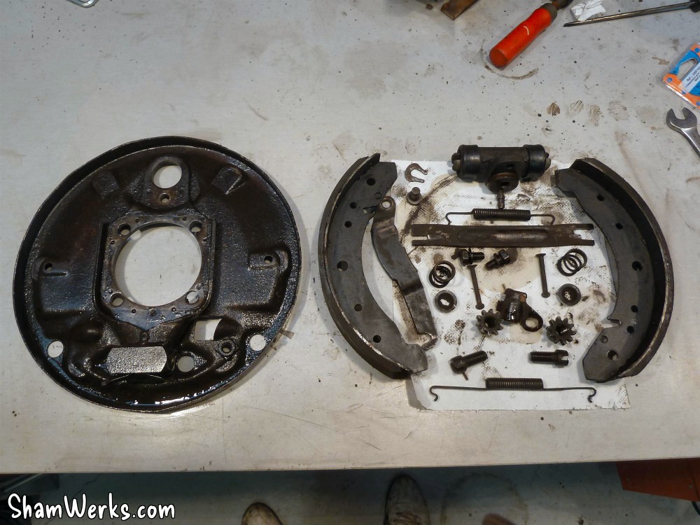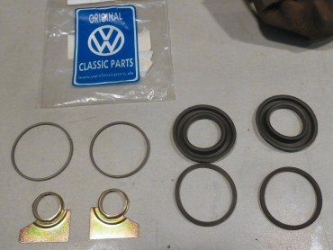 Changement des disques et roulements par du neuf (merci Laurent!), et réfection complète des étriers : kit réfection VW Classic, plaquettes et flexible neufs, boulonnerie microbillée, étriers peints (kit Foliatec). Je voulais les peindre en rouge au départ, mais finalement je trouvais ça trop "bling", noir brillant c'est quand même plus classe.Pourquoi les peindre? Pour ne pas avoir un vilain étrier rouillé qui apparaît au travers des branches des Fuchs! 😉